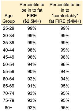 For a family who is 40 years old looking to fat FIRE with $4M+ in net worth, they are in the top 1.x%