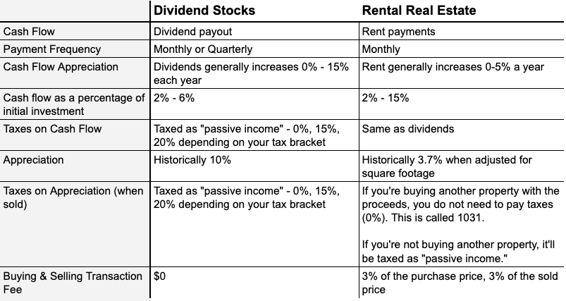 For that reason, real estate is very attractive. When was the last time your rent went down? Here’s a table to compare Dividend Aristocrats to rental real estate: