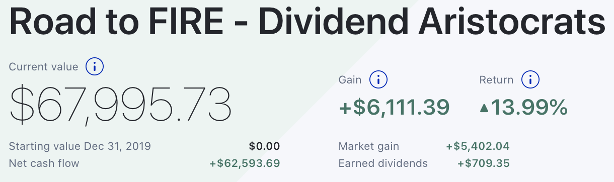 - The portfolio is up +13.99% YTD and I have unrealized gains of +$5,402.04. I’ve earned $709.35 in dividends. And when compared to VTI (total stock market, +13.57%), my portfolio is outperforming it by +0.42%. Not too shabby for a bunch of boring companies!