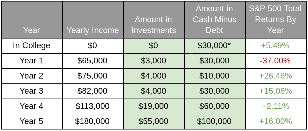 Figure 1.1 * = I had a full scholarship and worked 10-20 hours a week during college to accumulate $30K [/caption]